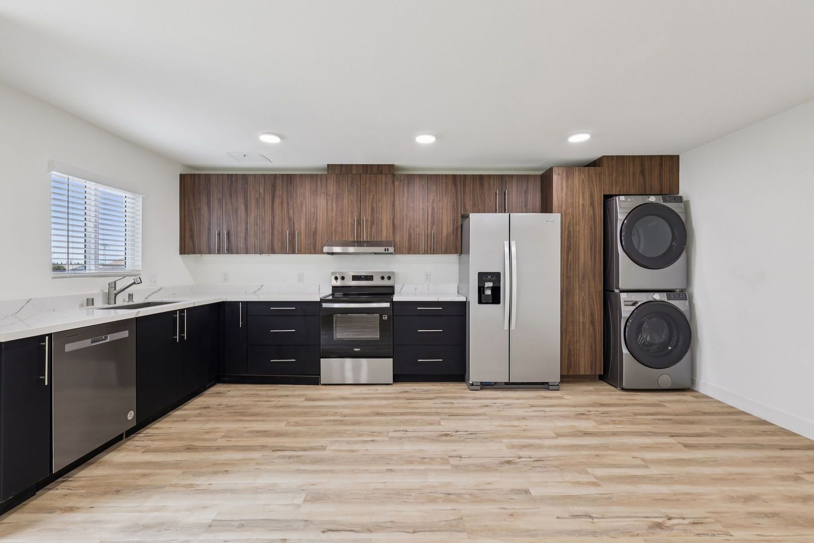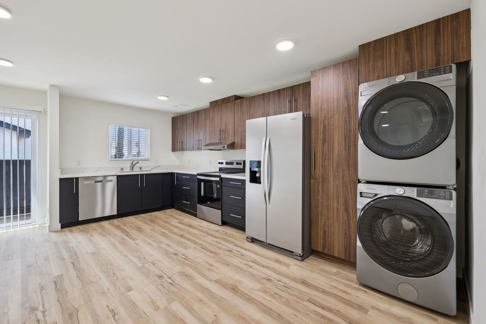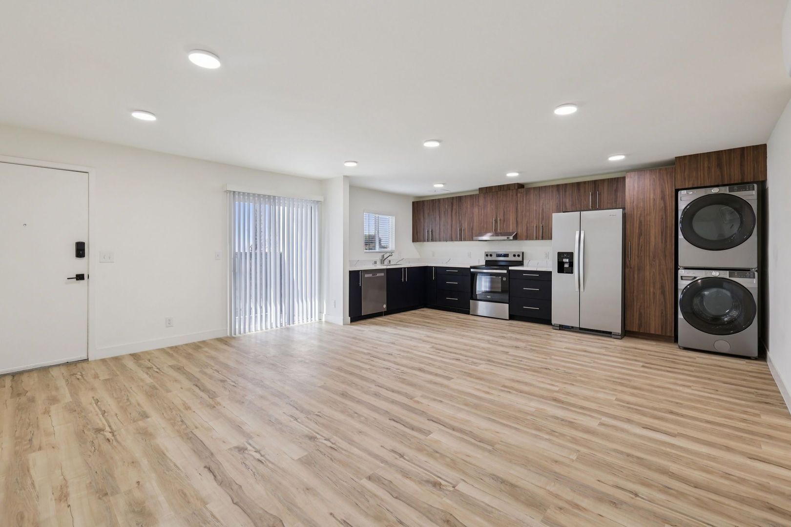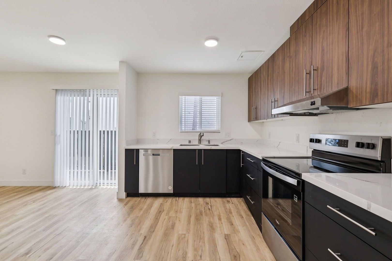 These two-bedroom apartments offer versatile layouts with room to live, work, and unwind. Each home features quartz countertops, luxury vinyl plank flooring, energy efficient appliances, smart home technology, and keyless entry.