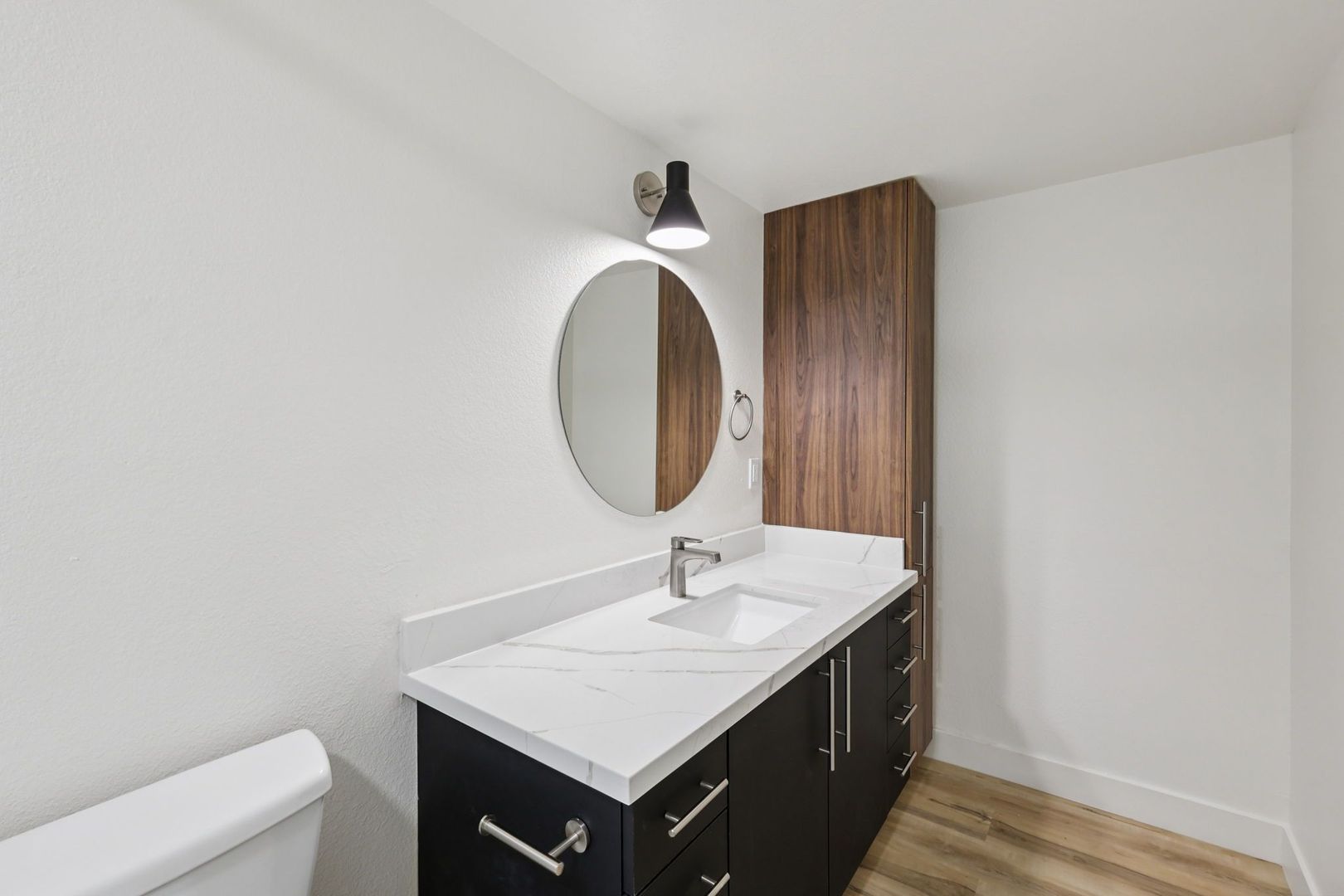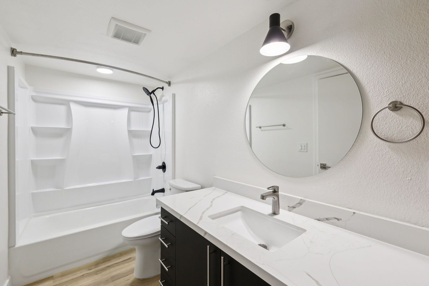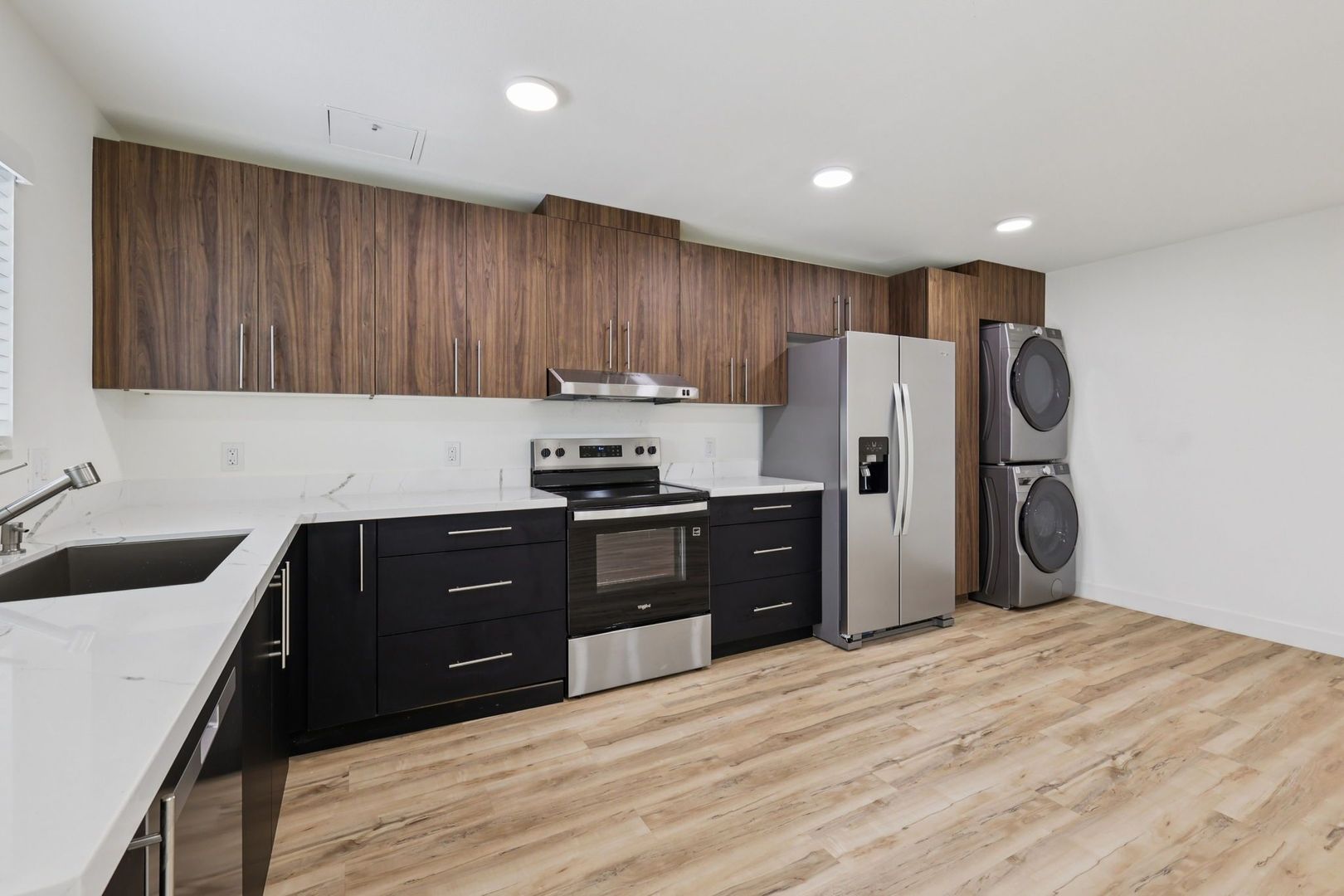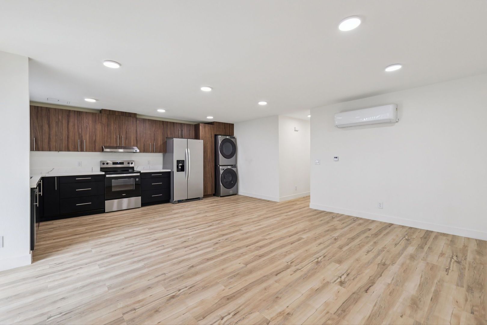 These two-bedroom apartments offer versatile layouts with room to live, work, and unwind. Each home features quartz countertops, luxury vinyl plank flooring, energy efficient appliances, smart home technology, and keyless entry.