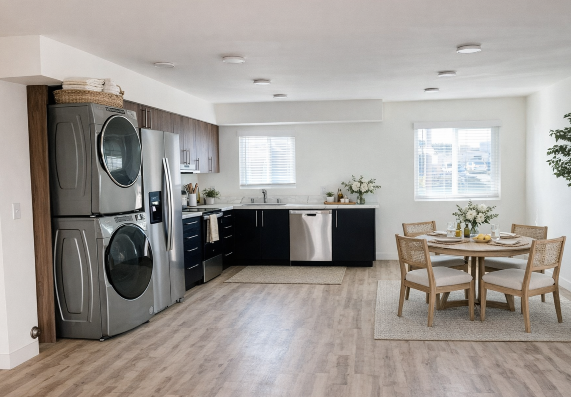 Designer finishes elevate every corner, showcasing quartz countertops, luxury vinyl flooring, and energy-efficient appliances that blend style with everyday functionality. Innovative smart-home technology with keyless entry enhances both convenience and security, while the in-unit washer and dryer add ease to daily routines, creating a home that feels thoughtfully designed for modern living.